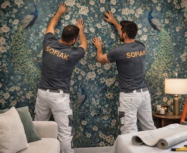 Chez SOFIAK Aménagement & Rénovation, nous vous accompagnons dans la pose de papier peint et la mise en valeur décorative de vos intérieurs, avec des finitions soignées et un rendu élégant.